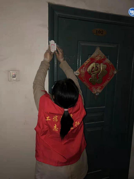 在每户隔离对象家门墙上安装、调试好设备后,社区工作人员敲开他们的家门,和他们面对面沟通交流,告诉他们安装设备的原因和注意事项,消除他们的恐惧和疑虑,询问他们的身体和生活情况,鼓励支持他们。