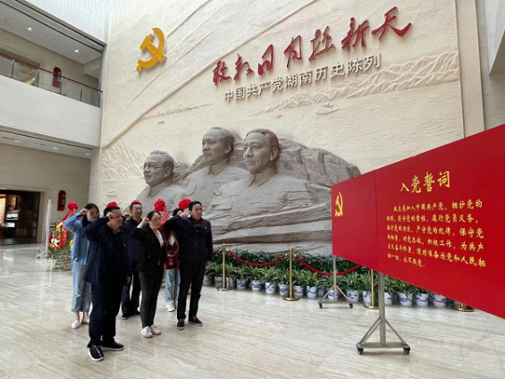在“敢教日月换新天”大型浮雕背景前,全体党员重温了入党誓词,随后参观了湖南党史陈列馆、雷锋生平事迹陈列馆,大量珍贵的历史文献影像资料,让党员们受到了深深的震撼和洗礼。参观后,支部开展了学习研讨,大家结合本职工作谈学习体会。通过这次学习,全体党员对党奋斗的艰辛历程有了更加深刻的了解,也更进一步坚定了信仰和理想信念。