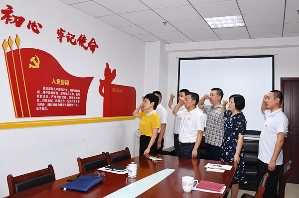 彭涛同志首先带领支部全体党员重温入党誓词,并对开好此次专题组织生活会提出要求。支部书记刘顺书同志通报了会议准备情况并代表支部报告半年来党支部工作情况特别是开展党史学习教育情况,围绕党史学习教育、联系服务党员群众、为民办实事、力戒形式主义等方面通报了支部检视问题情况,并制定了整改措施。